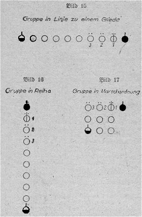 a) Gli Schütze 4-9 compiono le azioni di fuoco e il combattimento ravvicinato b) Lo stv. Gruppenführer è responsabile di: 1.) tenere insieme il gruppo (nessuno deve restare indietro in combattimento) 2.) assicurarsi che gli ordini siano eseguiti 3.) Collegamento con il capo plotone e i Gruppenführer vicini 4.) marcare la linea del fronte. Egli porta la bandiera nella linea più avanzata |