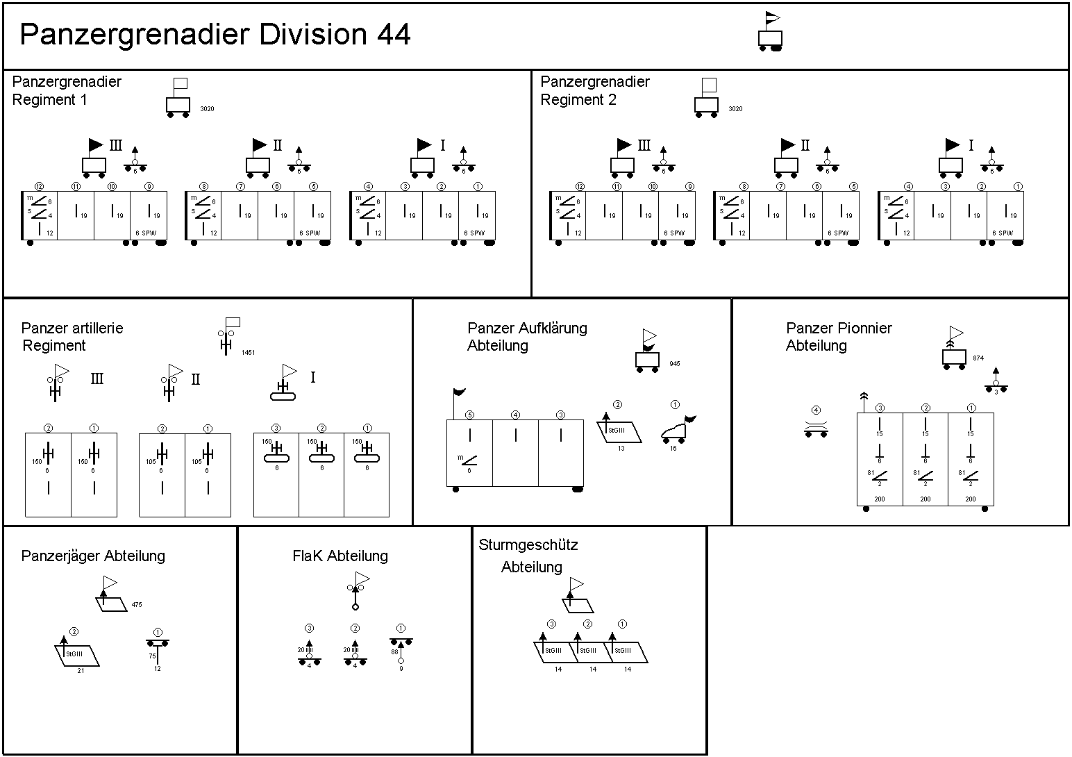 Elenco delle variazioni cronologiche dell'organico delle divisioni meccanizzate tedesche durante la seconda guerra mondiale. Le divisioni meccanizzate comparvero nell'esercito tedesco nel 1940(?).